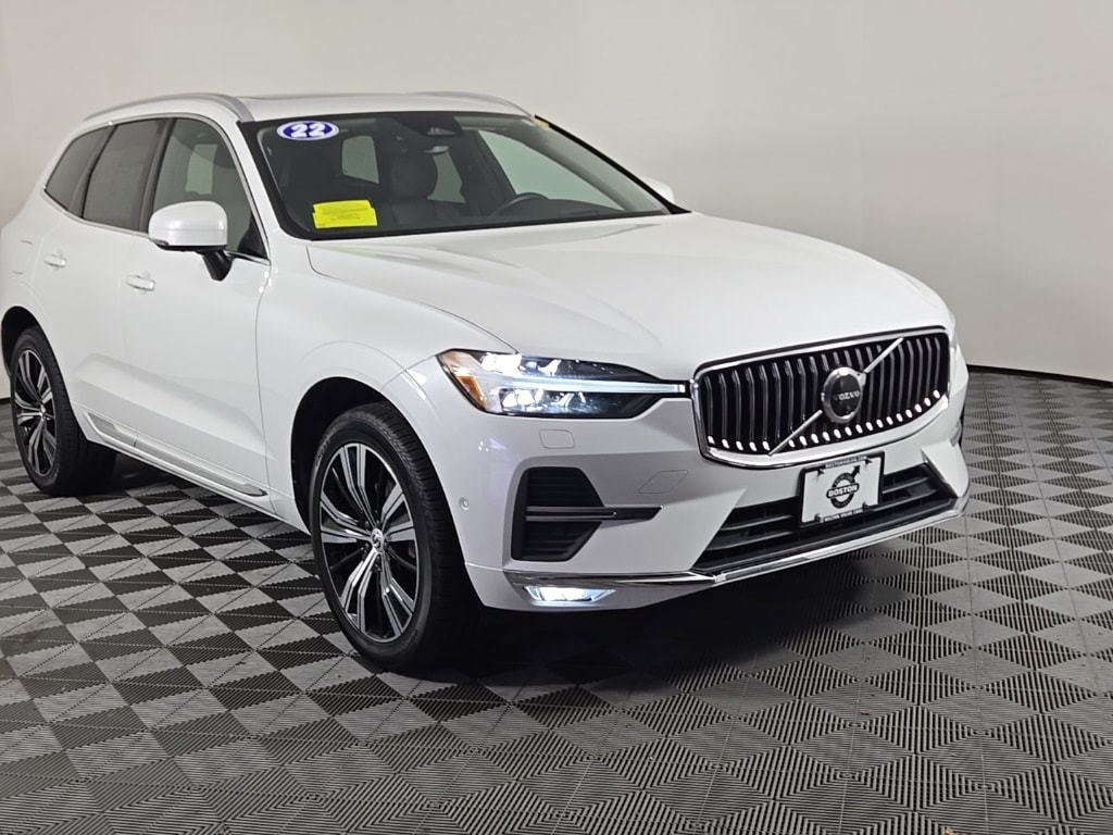 Certified. 2022 Volvo XC60 B5 Inscription Crystal White Metallic AWD CARFAX One-Owner. Clean CARFAX. 2.0L I4 Turbocharged Vehicle Detailed, Bluetooth Hands-Free Calling, Apple Car Play, Mild Hybrid, 2 Keys, One Owner., Well Maintained., 12V Outlet in Cargo Area, 360 Degree Surroundview Camera, Advanced Package, Air Purifier, Climate Package, Exterior Parking Camera Rear, Front dual zone A/C, Fully automatic headlights, Graphical Head-Up Display, Headlight High Pressure Cleaning, Heated & Ventilated Front Bucket Seats, Heated Rear Seats, Heated Steering Wheel, Navigation System, Perforated Nappa Leather Upholstery, Pilot Assist Driver Assistance System, Power moonroof, Power Operated Tailgate, Radio: harman/kardon Premium Audio System, Rear dual zone A/C, Remote keyless entry, Security system, Split folding rear seat, Wheels: 20" 5-Multi Spoke Black Diamond Cut Alloy. 22/28 City/Highway MPG